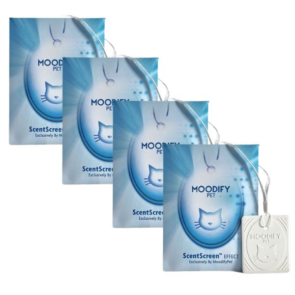 MoodifyPet MultiCat 4 Pack Bundle is an organic, non-toxic choice ideal for homes with multiple cats. Formulated to be safe for various breeds and sensitive cats, it offers a gentle yet effective solution to maintain a clean and healthy environment for all your feline family members. This bundle supports the well-being of every cat in your home with trusted safety and quality. Show love to a fellow cat parent. Includes a 4-pack of MoodifyPet pendants and a gift pouch. The perfect present for odor-free visits.