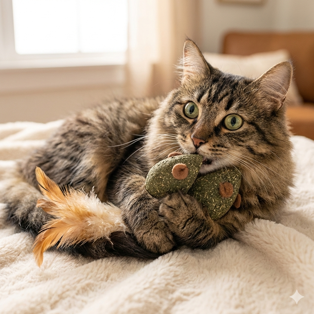Premium Feather-Tailed MADNIP Toy – Interactive Natural Mouse for Cats & Kittens | Hours of play fun | Natural ingredients | Powerful and fruity than Catnip | Plant Based Build |